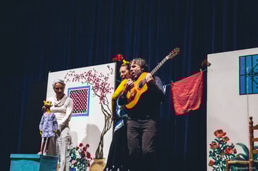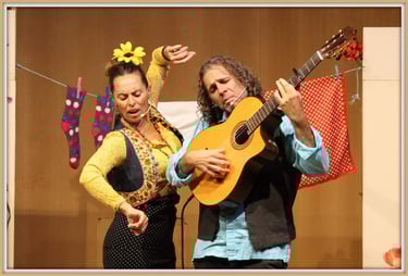 La gatita Candela que acaba de tener un percance con su amigo el ratón Manolito, acude llorando a su abuelo. Este y sus vecinos de patio tratan de animar a la pequeña a través de la alegría del cante y el baile flamenco. Poco a poco se va despertando en Candela su interés por el arte flamenco y el patio se llenará de gracia y frescura: se bailará, se cantará y se hará participar a todos los niños y niñas que aprenderán algunos conocimientos básicos de flamenco así como valores esenciales de respeto y amistad.